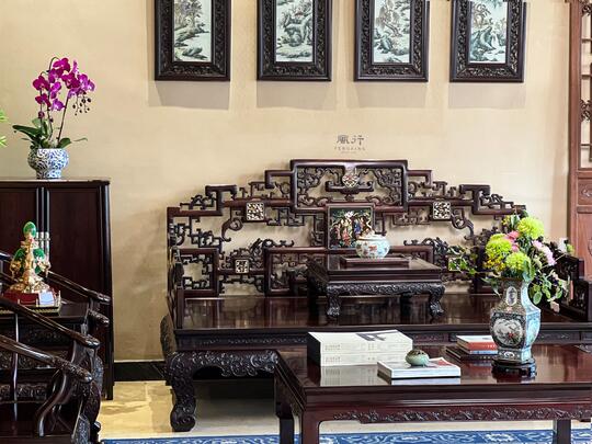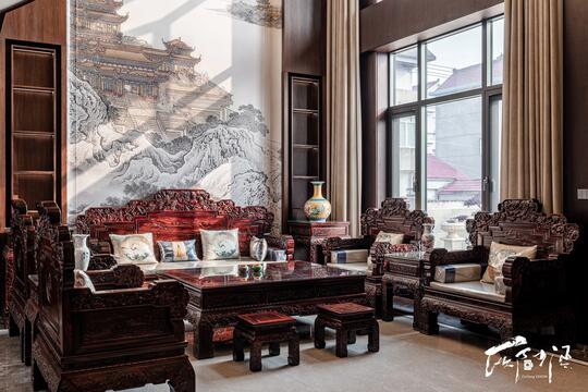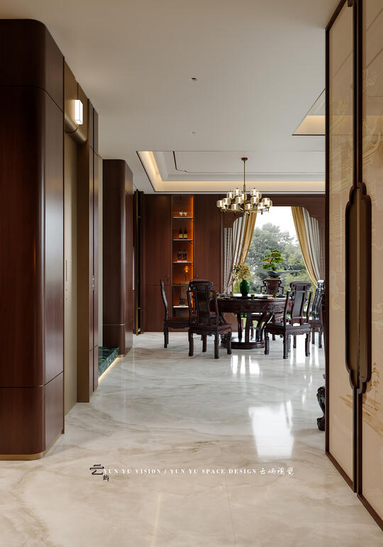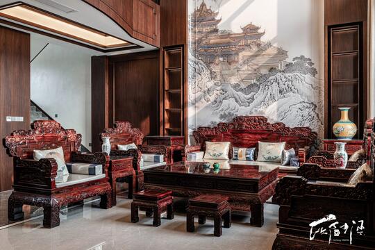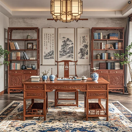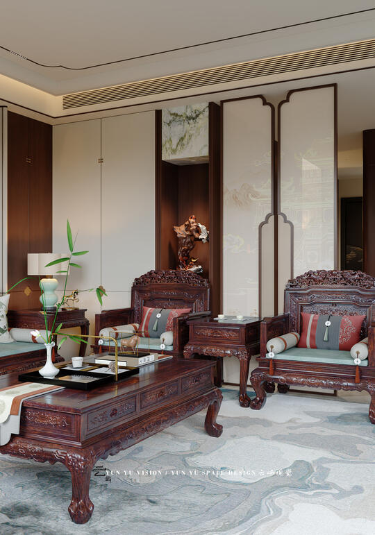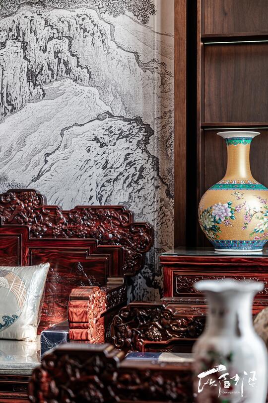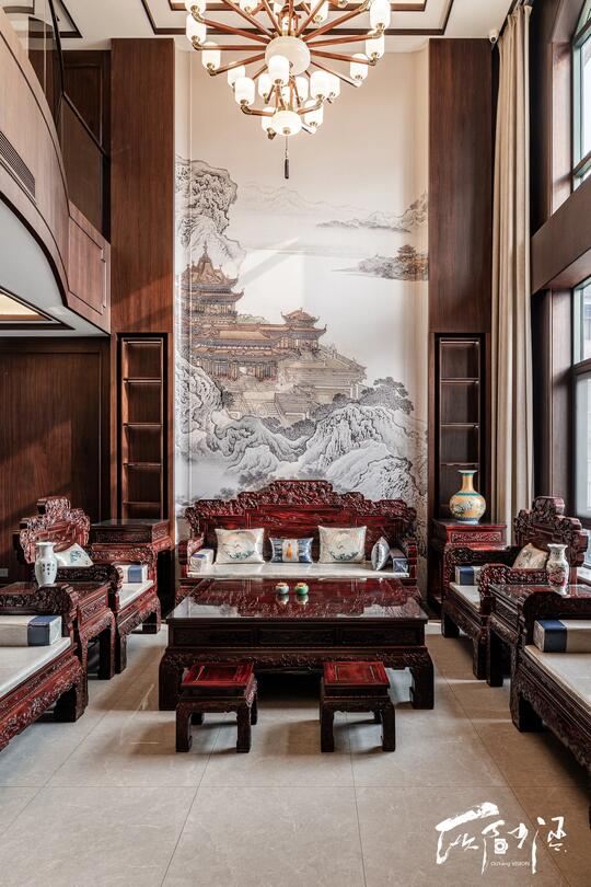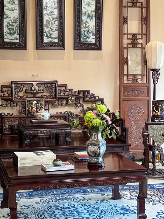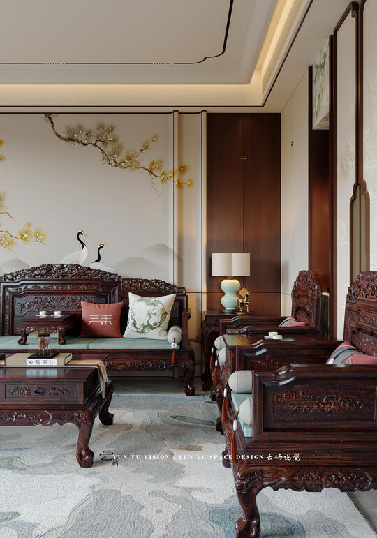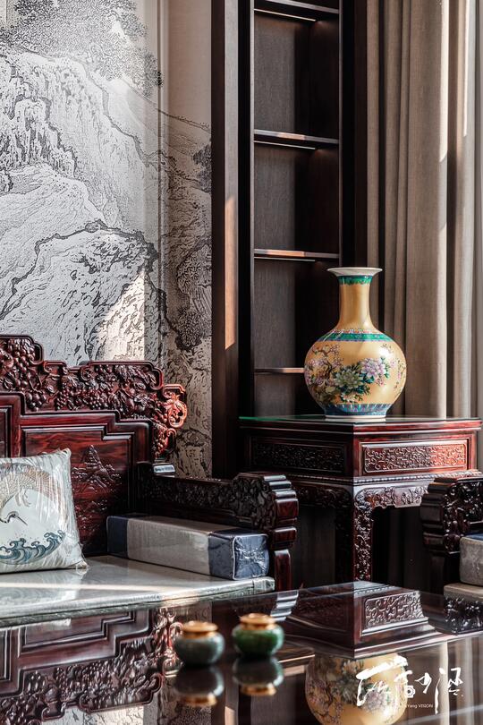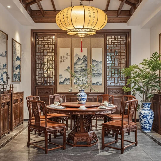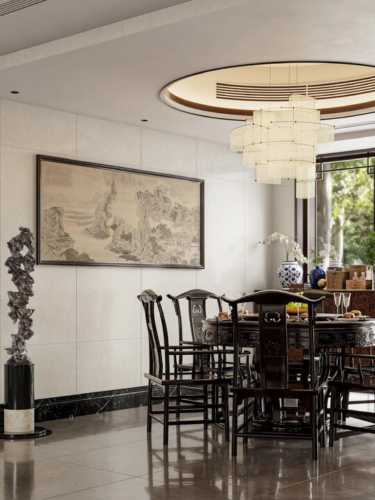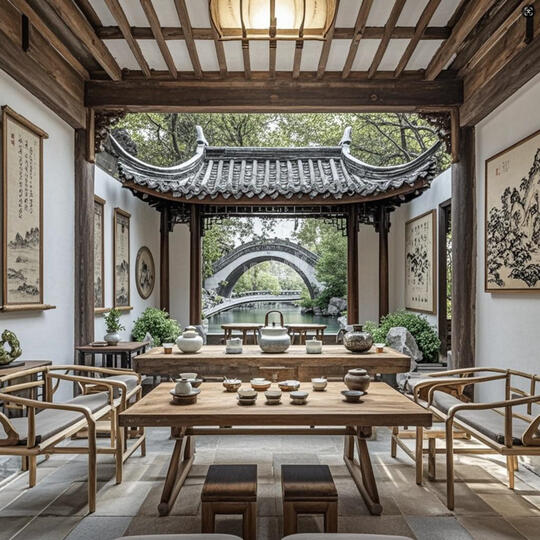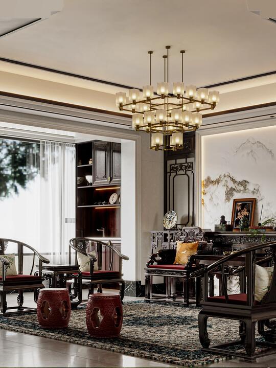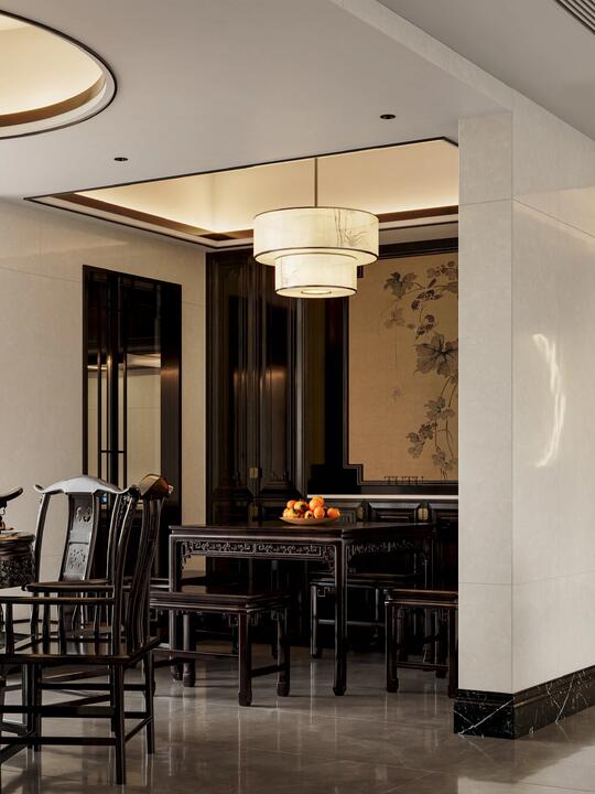 定义:是以中国明清时期官式建筑、园林及家居艺术为蓝本,融合儒家礼制、道家自然观与东方哲学形成的美学风格。以严谨的形制、符号化的装饰和自然材质为核心,追求天人合一、含蓄内敛、秩序与意境并重的东方美学境界。