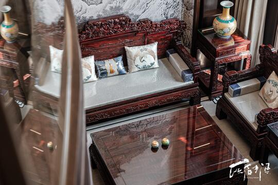 材料: 1、自然材质:木材,以名贵的硬木为主,比如黄花梨、黑胡桃木、红木等。 石材(青石、太湖石、汉白玉、卵石),陶瓷与瓷器(青花瓷、紫砂、钧窑、定窑),宣纸与绢帛 ,漆器(大漆、雕漆、螺钿),藤编与竹编。 2、现代材质:玻璃 ,金属(黄铜、青铜、不锈钢),泥与微水泥,现代织物(棉麻、丝绒、混纺)。 3、传统工艺:刺绣、缂丝、螺钿、珐琅等。 4、整体追求古典、华贵的质感