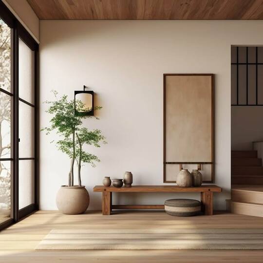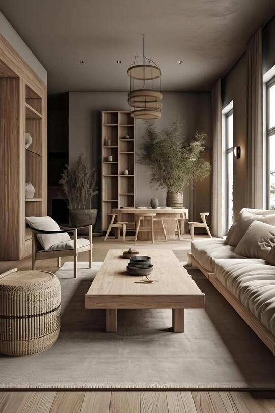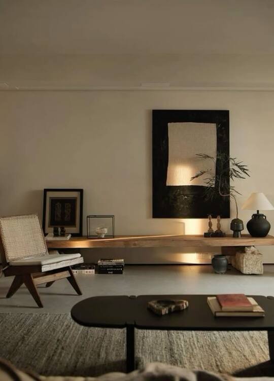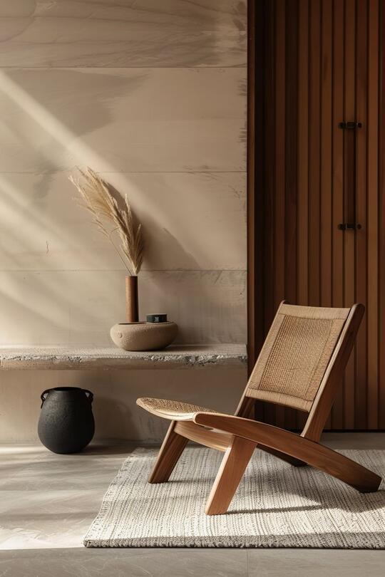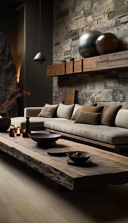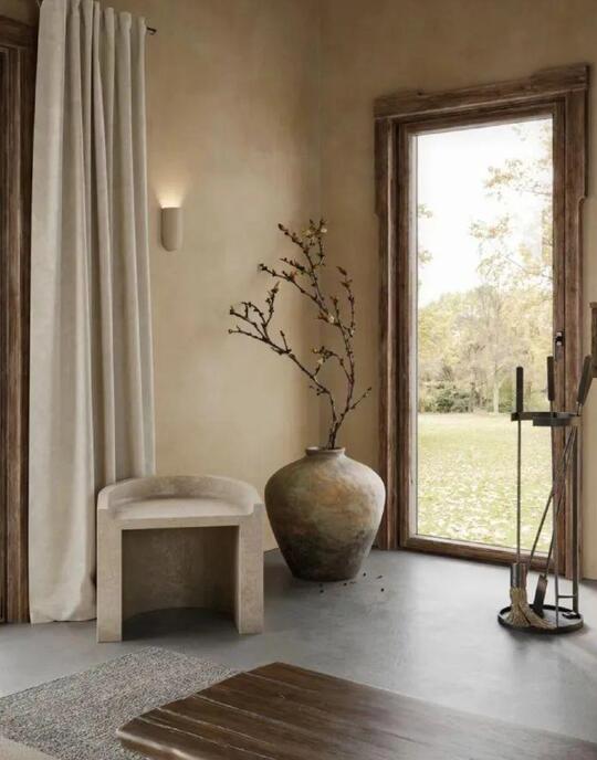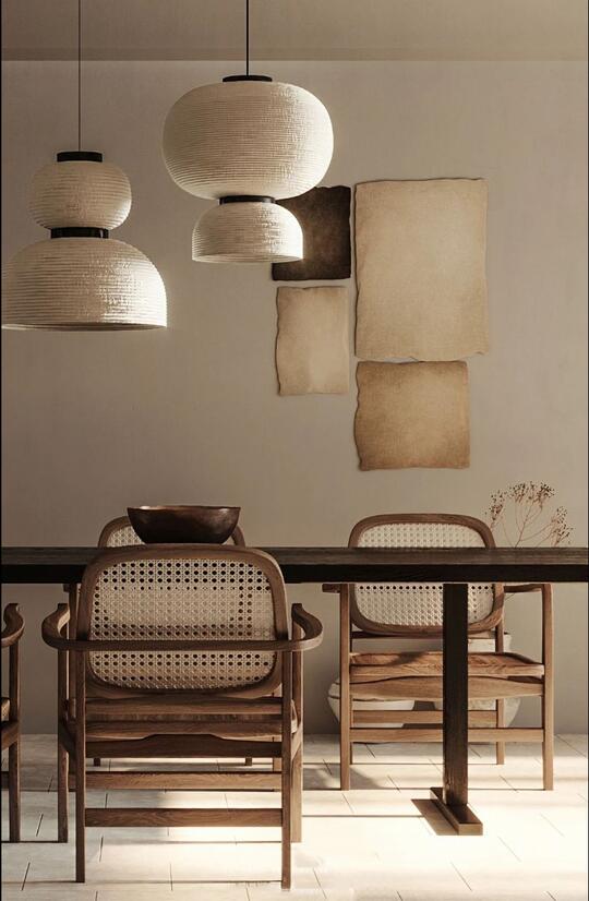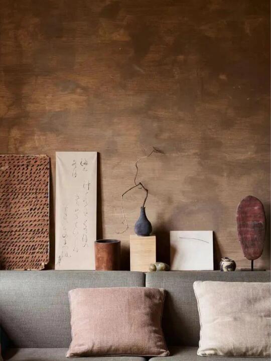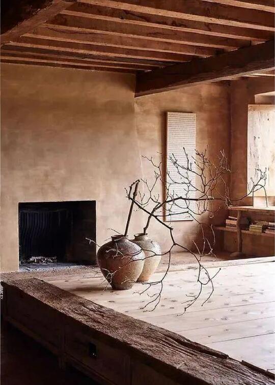 材料:天然、原始、粗粝,偏好未加精饰的原始材料,如粗陶、原木、藤编、亚麻、石材、手工纸等,强调触感的粗糙与质朴。 接受开裂、锈蚀、磨损、虫蛀等自然老化现象,体现"物之哀"的哲学。