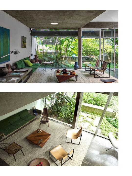 材料: 自然材质: 热带硬木、石材、编织材料、彩色水泥砖/马赛克 现代材质:玻璃、钢筋混凝土、钢材 强调的质感是对比、融合与有机感的统一