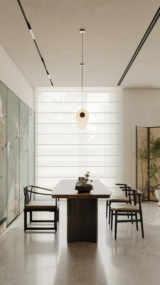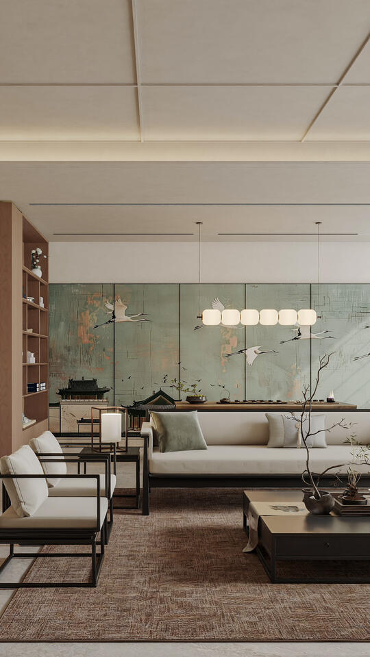 定义:以凸显中国东方美学意境和氛围为核心,追求的是意境、韵味与现代功能、审美、材料的和谐统一,强调提取传统元素的精髓和神韵, 运用现代的设计语言、工艺、材料和技术,满足当代人的功能需求、生活方式和审美偏好,让东方精神在现代语境中焕发新生。