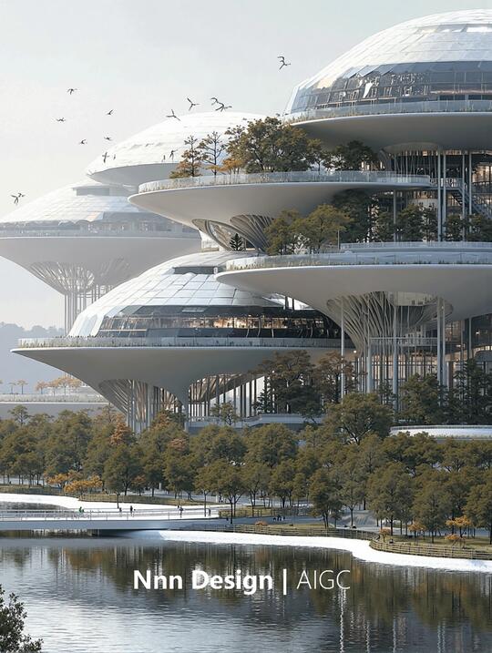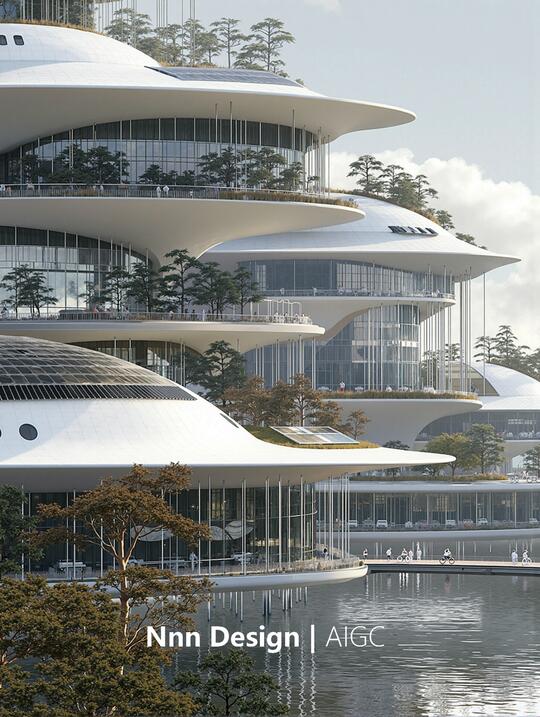 形态: 流线型与曲面形态、参数化曲面,智能表皮,结构轻量化 生物仿生,模仿蜂巢结构、参照骨骼生长原理 模块化与可扩展结构 绿化与生态融合 追求一种高科技、低冲击、生态友好的质感