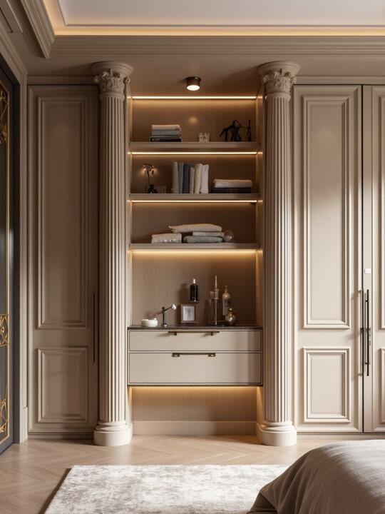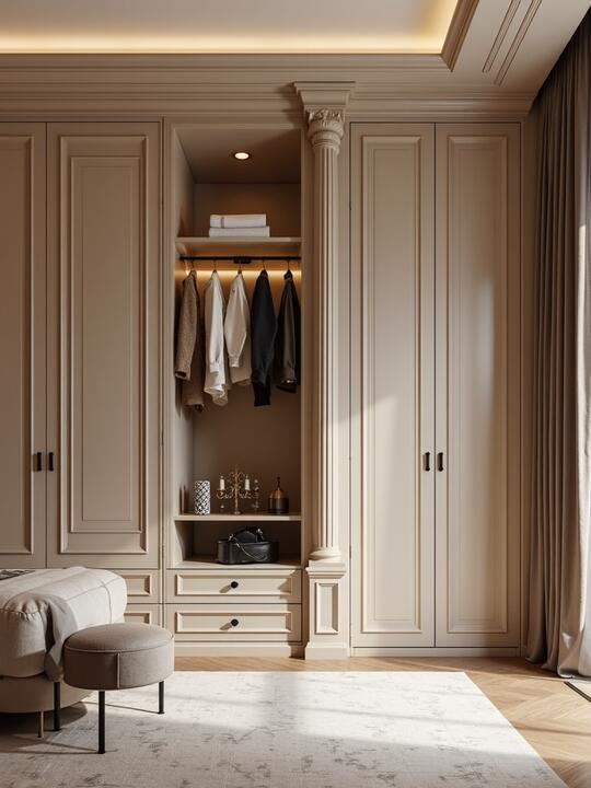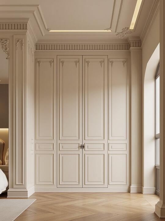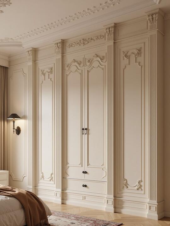形态: 拱形结构 墙面分层:如油画画框 对称与轴线 家具与产品曲腿形态、雕花与镂空、弧形与椭圆 人字拼 / 鱼骨拼地板 高窗 + 长帘