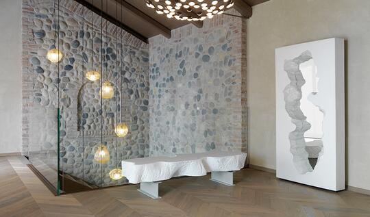 材料: 材质运用多元,且贴近日常,例如商业招贴海报、商品包装等材质的拼贴效果。 自然材质: 木材、石材 现代材质:玻璃、塑料、金属 通过对自然与现代材质的独特运用,强调了对比、光泽以及趣味性的质感,旨在打破传统的设计限制,展现个性化的审美观念