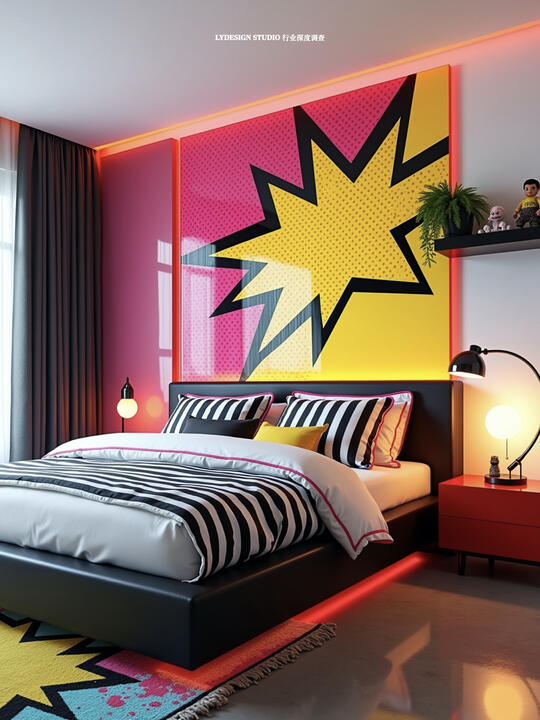 波普风属“主流前卫”,因其本身就是从“亚文化”和“实验艺术”中崛起的“先锋表达”。如今,这些原本具有颠覆性的符号已被完全驯化,其视觉元素被提纯、简化并复制,成为一种流行的装饰风格,故定位为主流前卫。