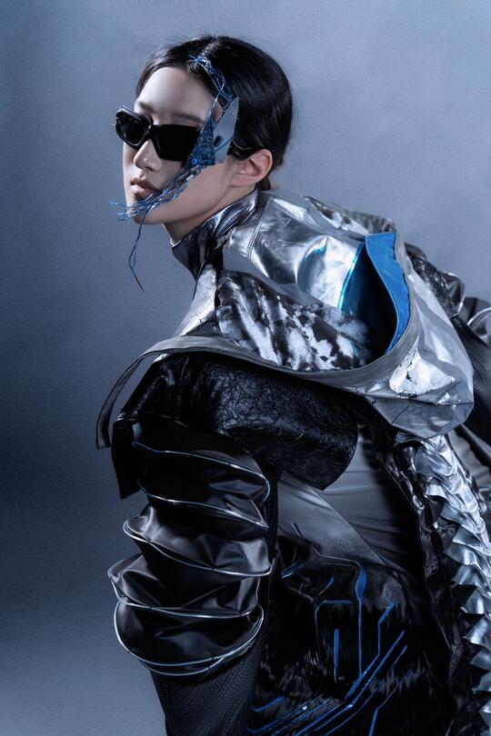 色彩: 主色调:黑色/ 锈红 / 暗棕,雾霾蓝 / 铁灰,冷调紫色/ 蓝色/绿色 辅色:电光蓝/ 荧光绿,霓虹粉 / 洋红/ 警示黄等点缀,增加文化混杂感与视觉复杂