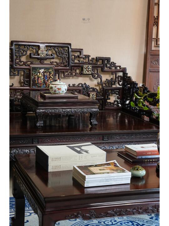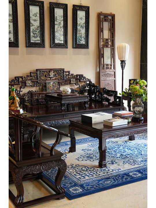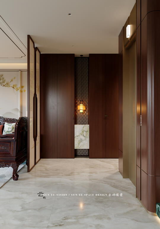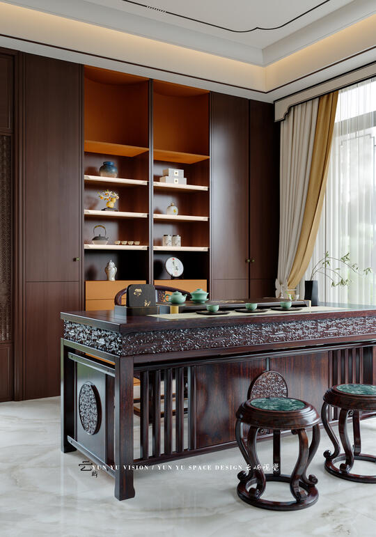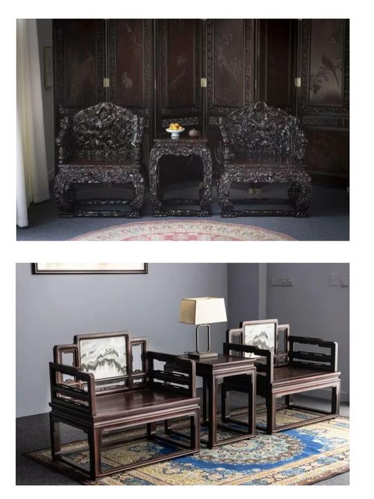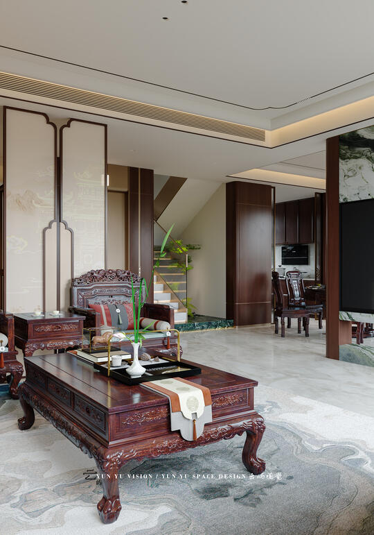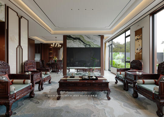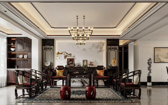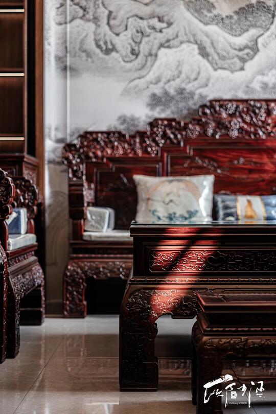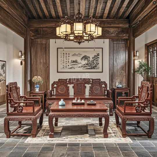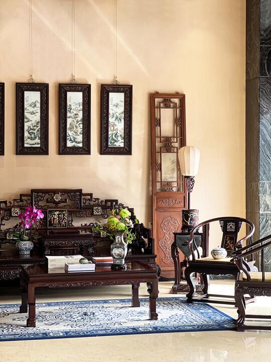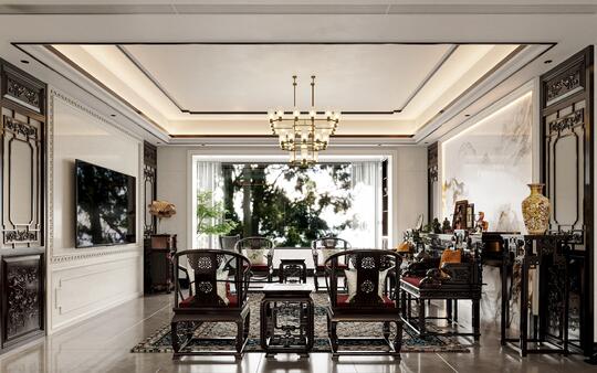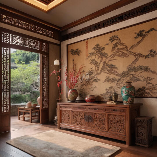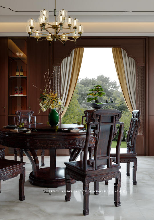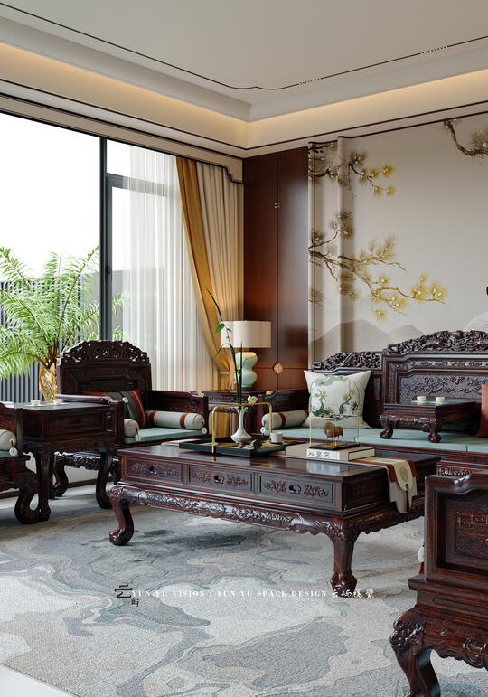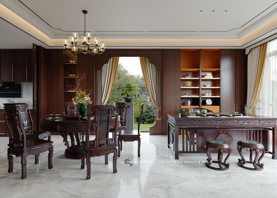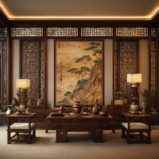 定义:是以中国明清时期官式建筑、园林及家居艺术为蓝本,融合儒家礼制、道家自然观与东方哲学形成的美学风格。以严谨的形制、符号化的装饰和自然材质为核心,追求天人合一、含蓄内敛、秩序与意境并重的东方美学境界。