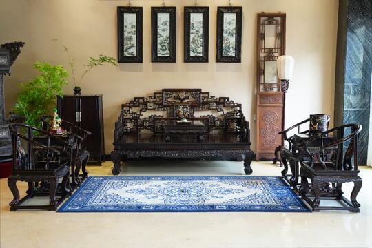 材料: 1、自然材质:木材,以名贵的硬木为主,比如黄花梨、黑胡桃木、红木等。 石材(青石、太湖石、汉白玉、卵石),陶瓷与瓷器(青花瓷、紫砂、钧窑、定窑),宣纸与绢帛 ,漆器(大漆、雕漆、螺钿),藤编与竹编。 2、现代材质:玻璃 ,金属(黄铜、青铜、不锈钢),泥与微水泥,现代织物(棉麻、丝绒、混纺)。 3、传统工艺:刺绣、缂丝、螺钿、珐琅等。 4、整体追求古典、华贵的质感