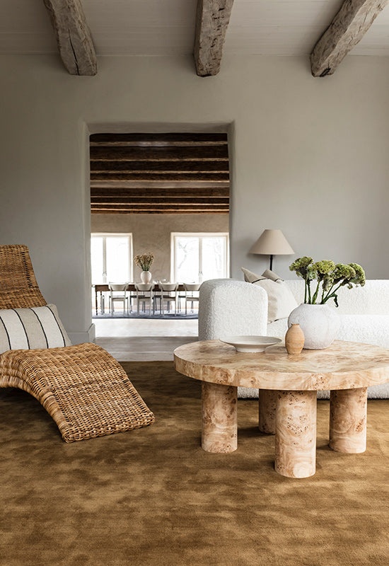 形态: 不对称与非规则性、形态有机、自然感 用基础几何形态,比如矩形、圆形来表达稳定感,但在总体构图中应避免机械对称,追求自然平衡 空间留白,墙面、地面、天花大面积素净,不设装饰 模仿生长之态,拒绝工业感。 拓展知识: 工业感是一种源于工业生产场景,传递机械属性、人工制造痕迹的视觉。与自然感强调的原生、有机、无人工干预形成鲜明对比。