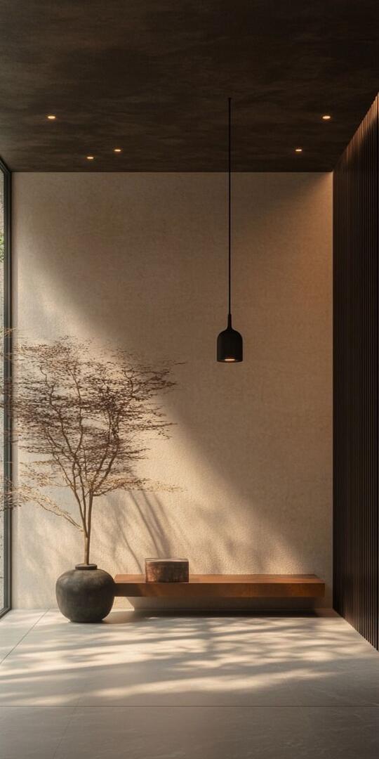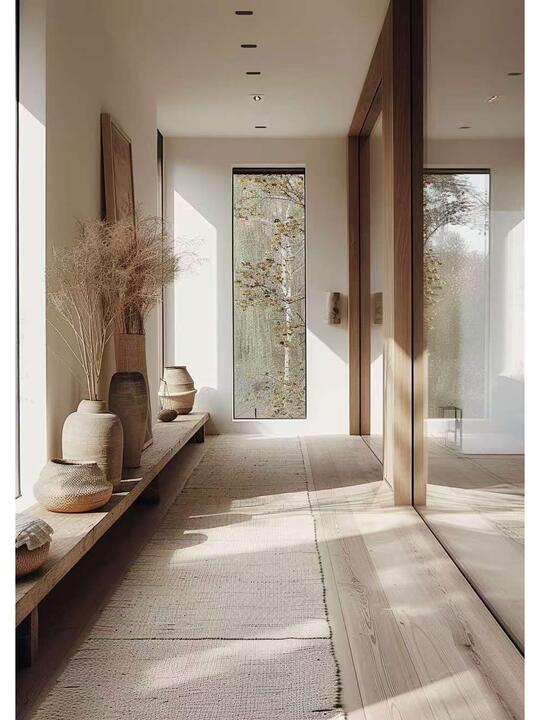 如果色彩是高饱和度亮色、数字化色彩,采用金属等未来感材料、空间特别明亮的就不是侘寂风。 侘寂风与斯堪的纳维亚风的区别 侘寂风强调: 幽冥空间+原生材料 陈旧肌理(如剥落墙面+风化木梁)、粗糙表面、不完美 孤寂感(如单一陶器置于空荡桌面)、手作感 斯堪的纳维亚风强调: 明亮空间+自然光线、自然元素 干净简洁的线条、整洁干净、重视收纳 工业化设计 大面积的白色或者浅色原木色的应用 侘寂风与