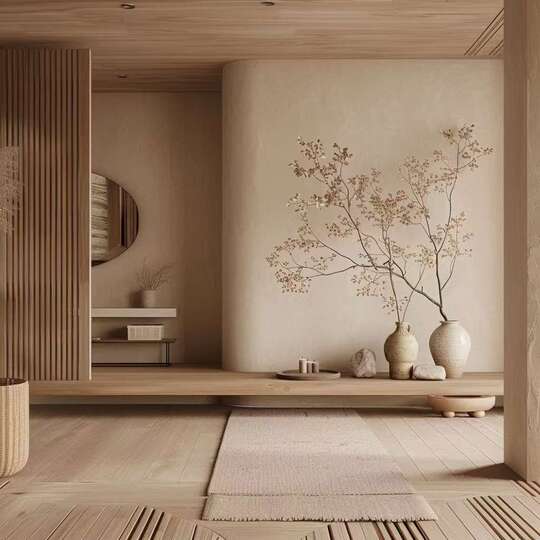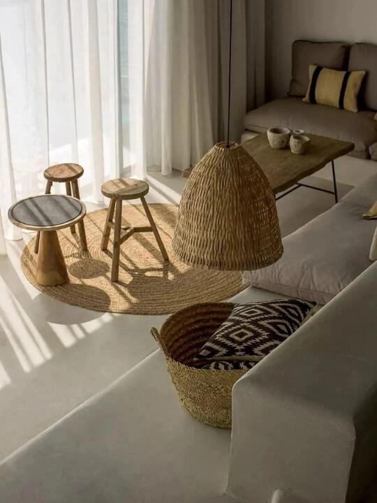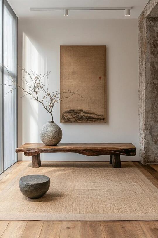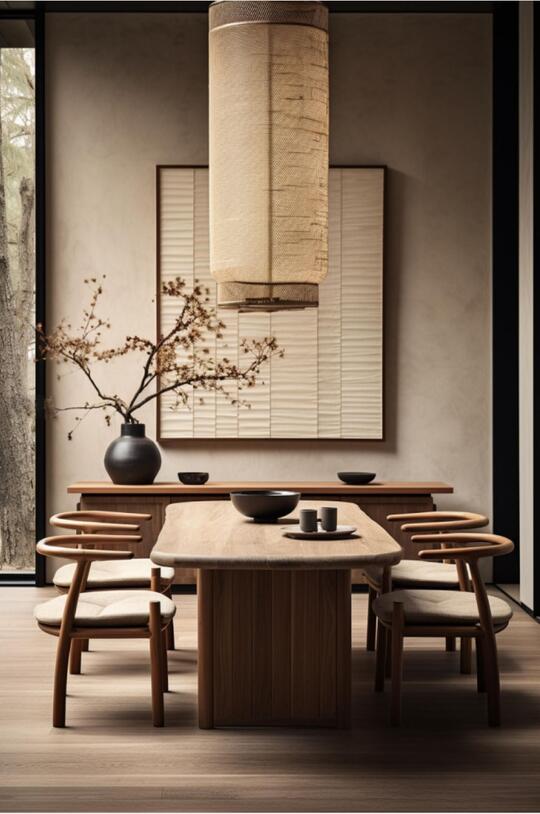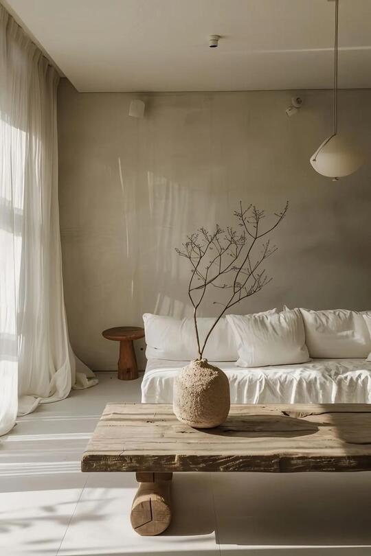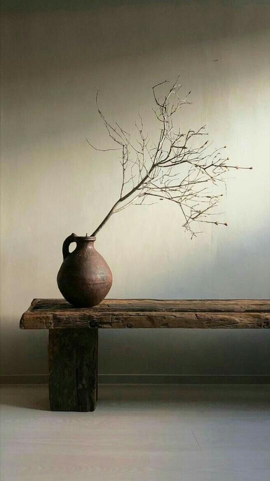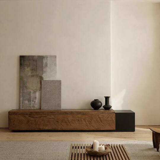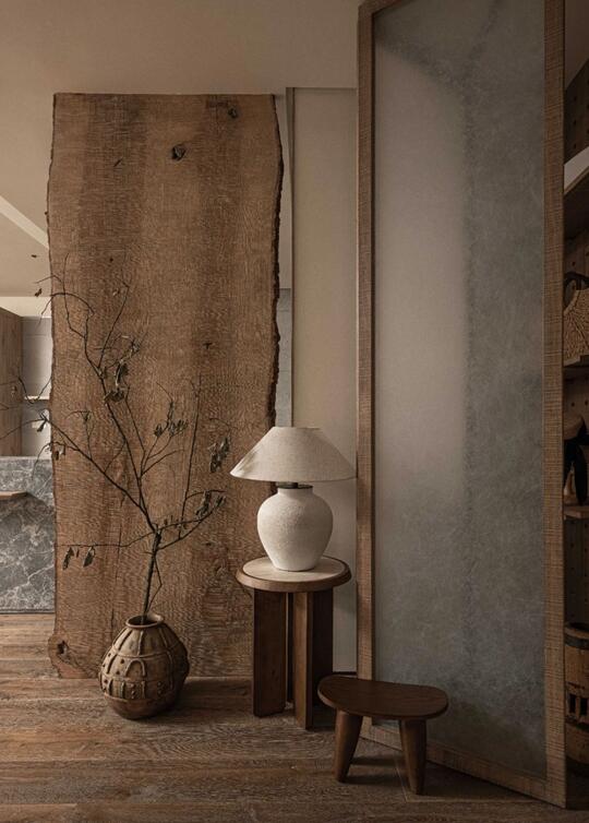 材料:天然、原始、粗粝,偏好未加精饰的原始材料,如粗陶、原木、藤编、亚麻、石材、手工纸等,强调触感的粗糙与质朴。 接受开裂、锈蚀、磨损、虫蛀等自然老化现象,体现"物之哀"的哲学。
