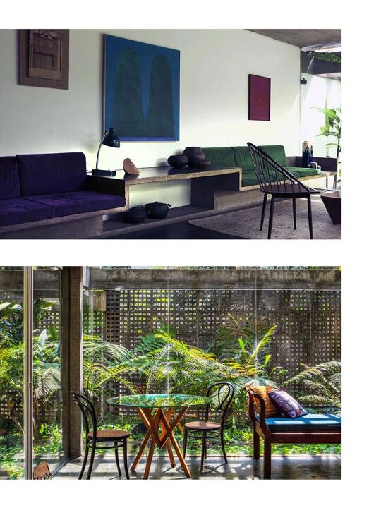 材料: 自然材质: 热带硬木、石材、编织材料、彩色水泥砖/马赛克 现代材质:玻璃、钢筋混凝土、钢材 强调的质感是对比、融合与有机感的统一