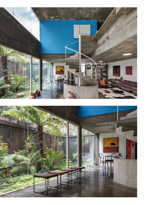 色彩: 主色调:热带硬木色、白色、混凝土灰 辅色:亮黄、天蓝/电光蓝、鲜红、洋红、热带绿植色、大地色系等 充满地域特色,宁静而不失活力 整体色调浓烈、鲜明,反映出热带地区热情洋溢、充满生命力的文化与生态环境