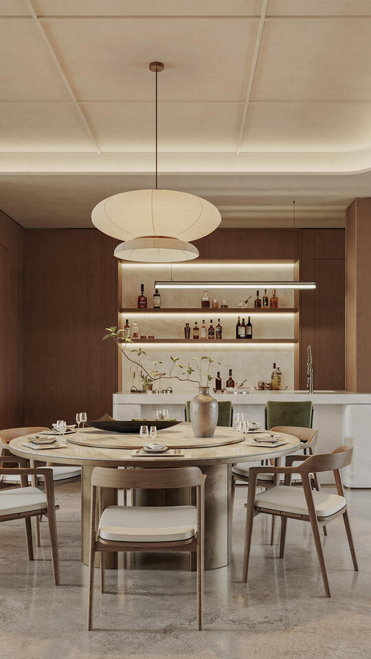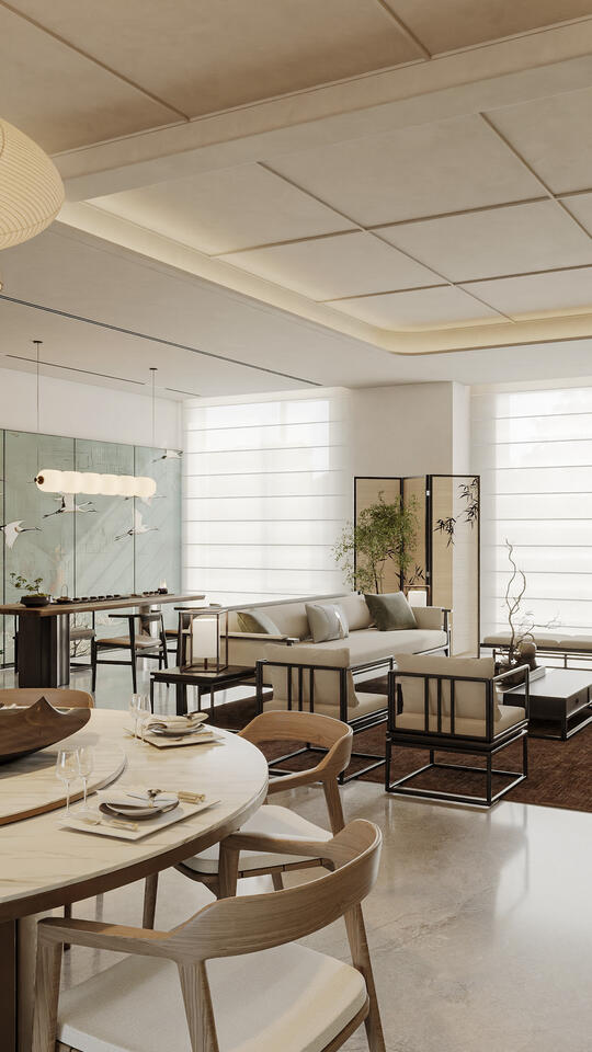 定义:以凸显中国东方美学意境和氛围为核心,追求的是意境、韵味与现代功能、审美、材料的和谐统一,强调提取传统元素的精髓和神韵, 运用现代的设计语言、工艺、材料和技术,满足当代人的功能需求、生活方式和审美偏好,让东方精神在现代语境中焕发新生。