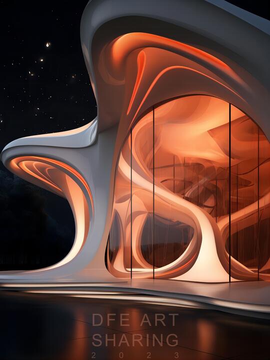 定义:继承早期未来主义对技术、速度与动态的颂扬,并将其置于数字时代的语境中重新诠释。强调未来、技术进步和生态可持续性。以科技乐观、有机形态与可持续性为核心,通过流动曲线、智能材料、生物仿生等手法,展现人类与技术和谐共生的美学风格。这一风格打破了建筑、设计与艺术的界限,通过参数化设计、发光界面和仿生结构,表达对科技赋能人类进步的乐观想象。风格追求柔和、有机、流动、环境融合,新未来主义的核心哲学不是冰冷的机器霸权,而是技术、自然与人类和谐共生的生态系统。 拓展信息: 未来主义:是20世纪初意大利发源的先锋艺术运动,核心是狂热歌颂工业文明的速度、技术、暴力,彻底否定过去、传统,未来不是对过去的延续,而是对过去的断裂与取代。其美学表现为对动态感的捕捉——如重复线条、破碎几何与强烈色彩。 参数化设计 一种基于算法逻辑的数字化创作方法,设计师通过设定参数规则与变量关系来生成形式。它超越传统几何限制,能创造出极其复杂、流动的有机形态,常见于扎哈·哈迪德等建筑师的作品中。参数化设计不仅是造型工具,更是一种系统思维——将环境数据、结构性能与美学意图整合为动态模型,实现了设计从“绘制形状”到“培育形态”的范式转变。 发光界面 指将光源作为视觉表皮的媒介,常见于建筑立面、装置艺术或交互设计中。它通过LED、OLED等光电技术,将信息、色彩与动态图像直接融入物质表面,使静态结构获得可变性。 仿生结构 受自然生物形态、结构与生长逻辑启发而设计的人造系统。它不只模仿外形,更学习自然界高效能、低耗材的原理——如蜂巢的轻质坚固、叶脉的输导优化。在建筑与工程中,仿生结构往往呈现出非线性、自适应与层级有序的特点,兼具美学有机感与技术效能,体现了可持续发展理念下,人类设计向自然智慧深度学习的趋势。