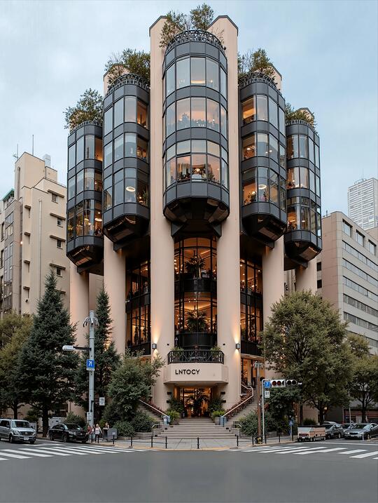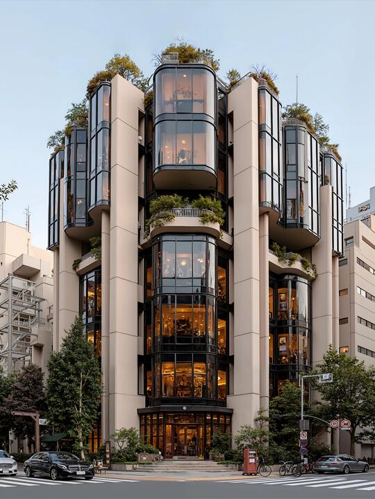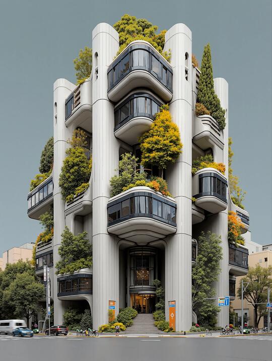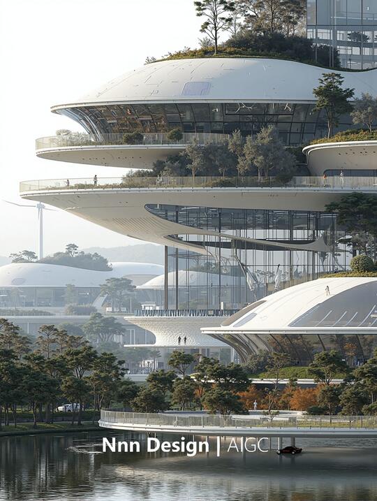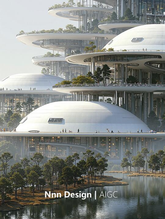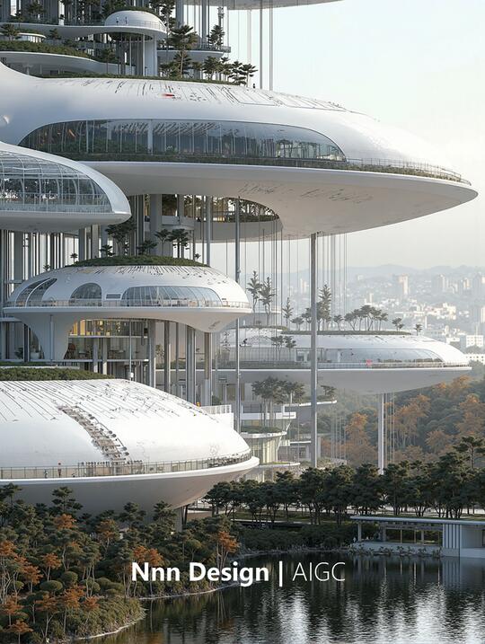 形态: 流线型与曲面形态、参数化曲面,智能表皮,结构轻量化 生物仿生,模仿蜂巢结构、参照骨骼生长原理 模块化与可扩展结构 绿化与生态融合 追求一种高科技、低冲击、生态友好的质感