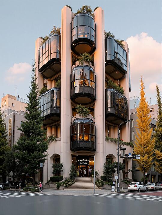 新未来主义风和赛博朋克风的区别 赛博朋克形态拥挤、堆叠, 管道、电缆外露,质感偏向粗糙、油污、破损、机械感 新未来主义形态主要是流线型、曲面、有机形态、轻盈悬浮,垂直森林、绿色屋顶,模块化、可扩展,质感偏向轻盈、光滑、透明、响应性 和解构主义区别是什么: 【新未来主义】 整体形态:流线型、有机曲线、仿生设计、光滑表面,常具“速度感”或“飞行器感” 典型元素:动态线条、透明材料、LED灯光、智能交互界面 【解构主义】 整体形态:破碎、扭曲、错位、非对称,故意制造不稳定与冲突感 典型元素:倾斜墙体、断裂平面、暴露结构、看似“未完成”的拼贴 拓展信息:响应性是指一个系统通过集成传感器、数据处理单元和智能执行材料,实时感知内外环境变化,并以其形态、功能或信息的动态调整作为反馈,最终实现性能优化、能效提升与用户体验无缝融合的智能交互特性。在新未来主义美学里响应性是一种核心的设计哲学和美学特征。它描述的是建筑、空间或产品能够感知环境刺激(如人、光线、温度、数据)并做出智能、自动反馈的能力,从而创造出一种动态、互动且充满生命感的体验。 拓展信息:在新未来主义中,“有机形态”并非指简单地模仿自然界中现有的生物外形(如把房子做成贝壳状),而是指从自然界的生长逻辑、物理规律和高效结构中汲取灵感,模仿自然界的原理,通过数字技术和智能材料,并将这些原理应用于建筑、产品和空间的结构与形态设计中去。 例如,它模仿蜂巢的结构、树叶的脉络分布或水滴的流体动力学,并将这些原理应用于建筑、产品和空间的结构与形态设计中。