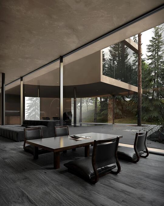 材料: 自然材质: 木材、石材、夯土 / 土坯、天然纤维织物 现代材质:钢材、玻璃、混凝土、模压复合材料 强调的是与自然的连接,注重材料的真实性和质感