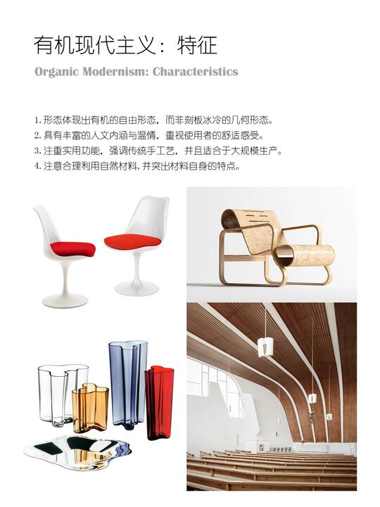 定义:是一种设计思潮,主张将自然界的形态、结构、生长逻辑(如曲线、分形、流动、共生)融入现代设计语言中,通过现代材料(如混凝土、钢材、玻璃、塑料)与工艺,创造出既具功能性又富有情感温度的空间与物体