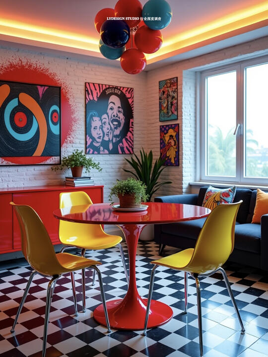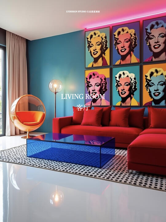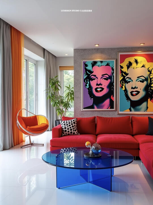 波普风属“主流前卫”,因其本身就是从“亚文化”和“实验艺术”中崛起的“先锋表达”。如今,这些原本具有颠覆性的符号已被完全驯化,其视觉元素被提纯、简化并复制,成为一种流行的装饰风格,故定位为主流前卫。