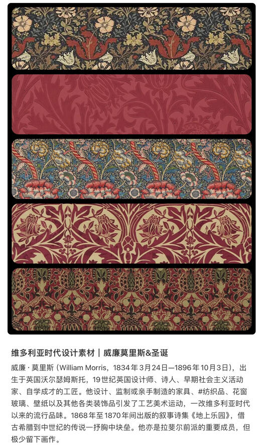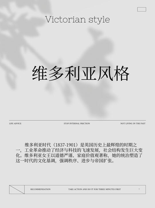 定义:是一种以繁复装饰、历史主义复兴、材料混搭与象征性表达为特征的19世纪中后期设计风格。它反映了工业革命带来的技术革新、中产阶级崛起与大英帝国全球扩张的文化自信,是一种“装饰即权力”的视觉宣言。 维多利亚风格不是单纯复兴某一个历史时期,而是同时复兴并混合了多个欧洲历史上的风格,主要有哥特复兴、洛可可复兴,除此之外还融合了一些传统中式、传统日式的美学风格。