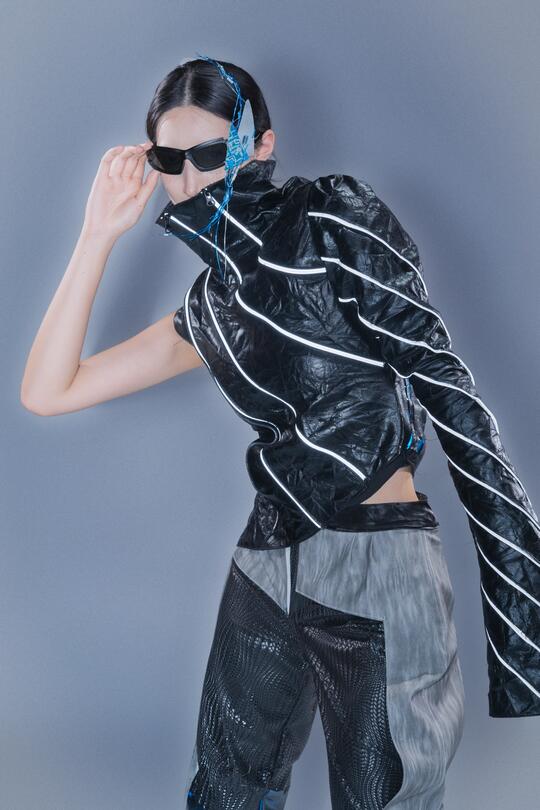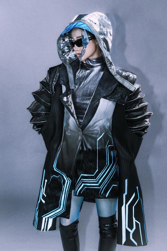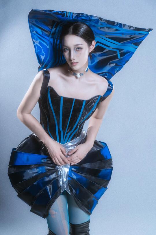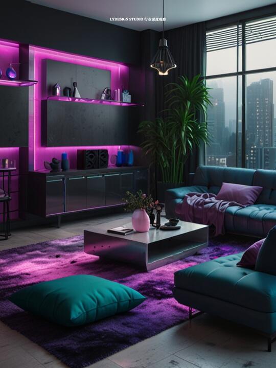 色彩: 主色调:黑色/ 锈红 / 暗棕,雾霾蓝 / 铁灰,冷调紫色/ 蓝色/绿色 辅色:电光蓝/ 荧光绿,霓虹粉 / 洋红/ 警示黄等点缀,增加文化混杂感与视觉复杂